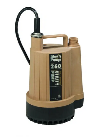 Liberty Pumps #260-2, Submersible Utility Pump, Manual, 1/6hp, 115v, Garden Hose Connection, 25′ Cord