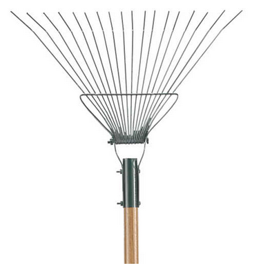 The Firebroom Rake #11-18-12F. Your choice of a wood or fiberglass handle is ideal for clearing fire lines of leaves, needles and other light ground litter. Constructed with 18 tines, made of high strength yet flexible 0.120˝ oil tempered spring steel.