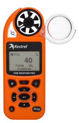 The 5500FW Pro provides critical environmental data for wildland firefighters and offers built-in calculation of Probability of Ignition (PIG) and Fine Dead Fuel Moisture (FDFM) with no reference tables needed! This versatile meter also measures wind speed, direction (wind direction and orientation), relative humidity, temperature, wet bulb temperature (psychrometric), altitude, density altitude, barometric pressure, crosswind/headwind/tailwind, heat stress index, dew point temperature, station pressure (absolute pressure), and wind chill. This meter tracks and logs over 10,000 sets of time-stamped data. On-screen graphing of history allows for the observation of environmental trends and more intuitive prediction of fire behavior. Additional features include a compass and a large, hi-res, hi-contrast, graphic display that is easily readable in bright sunlight and is also backlit for nighttime use. The rugged 5500FW is waterproof to IP67 standards, floats, and is drop tested to MIL-STD-810G standards. The meter can be used as a hand-held device or mounted on a tripod (sold separately) using a vane mount. Lanyard, protective pouch, lithium AA battery (average life 400 hours), certificate of conformity, and instruction manual are included. 5 year manufacturer’s warranty.