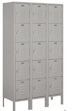 The Salisbury 5-Tier Box Style 36"X 5-'X 12" Deep Unassembled Standard Metal Locker in grey is a good solution for employee break rooms and anywhere you need to store personal items.