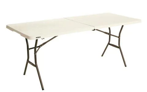 Lifetime 6 ft. Residential Fold-In-Half Folding Tables are constructed of high-density polyethylene and have a convenient folding design for easy transport and storage. The lightweight design, auto-locking feature and convenient carry handle make it easy for anyone to set up and take down. Our tables are UV-protected, will not crack, chip or peel and are built for indoor and outdoor use. The patented steel frame design provides a sturdy foundation and is protected with a powder-coated, weather-resistant finish. Ideal for family game night, outdoor activities and more, Lifetime's Fold-In-Half Tables are the perfect addition to your home.
