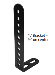 Hole spacing on the following L brackets is 1⁄2" on center.1⁄8" x 1" mild steel with black epoxy coating. Works with track mounting systems.