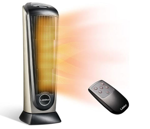 The Lasko Oscillating Ceramic Tower Space Heater 1500W has 2 quiet settings. Adjustable thermostat, Remote control and adjustable timer. 1-8 hours of auto settings in 1 hour intervals available. Cool touch exterior and overheat protection.