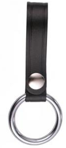 Plain leather design. Metal ring. Fits up to a 2 1/4" belt. Choose nickel, brass/gold, or black ring and snap.Other fine products