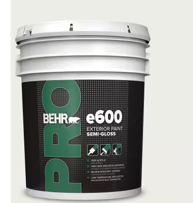 BEHR PRO 5 gal. #52 White Semi-Gloss Acrylic Exterior Paint dies to the touch in 2 hours, allowing recoats as soon as 4 hours after the first coat is laid down. 5 gals will cover 1250-2000 sq. ft. Best applied in temps between 35°F and 90°F. Spills are easily cleaned up with soap and water.