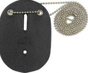 Leather oval neck badge holder. Approximately 3-3/8" x 2-3/8". Includes metal ball chain.