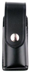 Plain leather design. Fits standard 2 ounce MK III canisters. Fits up to 2-1/4" belt.