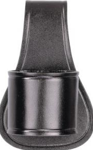 Plain leather design. Fits most standard D-cell flashlights. Fits up to 2-1/ 4" belt.