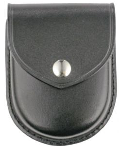 Plain leather round bottom design. Will fit most chain and hinged cuffs. Fits up to a 2 1/4" belt. Many closures to choose from.