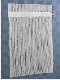 Medium wgt., white mesh laundry bags with a zipper or velcro closure. Bag size: 18" x 24". Mesh bags are sold and priced by the dozen.