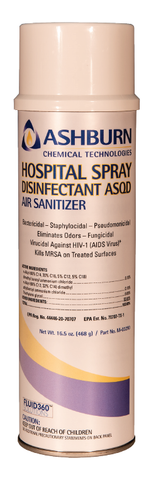 HOSPITAL SPRAY DISINFECTANT ASQD is an EPA registered disinfectant, deodorant and air sanitizer, with a quaternary disinfectant for quick effective germicidal action. Glycolized for effective air sanitization. Pleasantly scented to leave room fresh and free of odors. Kills Staphylococcus aureus, Pseudomonas aeruginosa, Salmonella choleraesuis. Kills MRSA on treated surfaces. Controls mold, mildew, and fungus. Virucidal against HIV-1 (AIDS Virus).