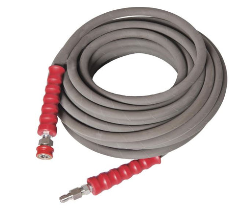 The Northstar Pressure Washer Replacement Hose 6000 PSI 100ftx 3/8" Model# 989401985 is designed for hot water applications. The hose has stainless steel quick connects, and is non-marking. Designed to be no-kink. Total item weight, 29lbs.