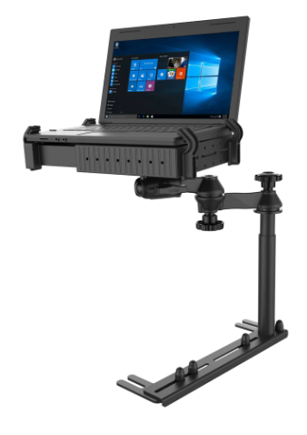 The RAM® No-Drill™ Universal Laptop Mount #RAM-VB-196-SW1 is made for an array of vehicles accomodating a 10-17" laptop. It bolts to the front bench or passenger seat.  Add a screen support or USB light to the tray for easier night operation.