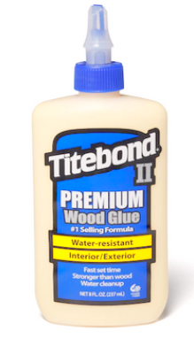 The Titebond II Premium Wood Glue is perfect for projects requiring water-proof adhesive. It meets all ANSI standards for water resistance. Woodworking, wood crafts like birdhouses, fence fixes and more. Heavy clamps are not always required thanks to Titebonds initial tack, ideal setting time, and strength. After Titebond premium wood glue sets it can be sanded. For commercial kitchens, Titebond is FDA approved for indirect food contact (cutting board repairs.)