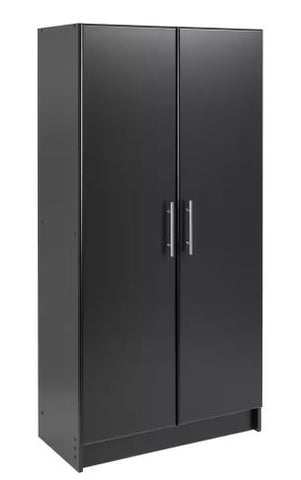 Has 1 fixed shelf and two removable for customizable storage. This cabinet can be used as a utility, garage, or kitchen pantry. Made from laminated composite wood.